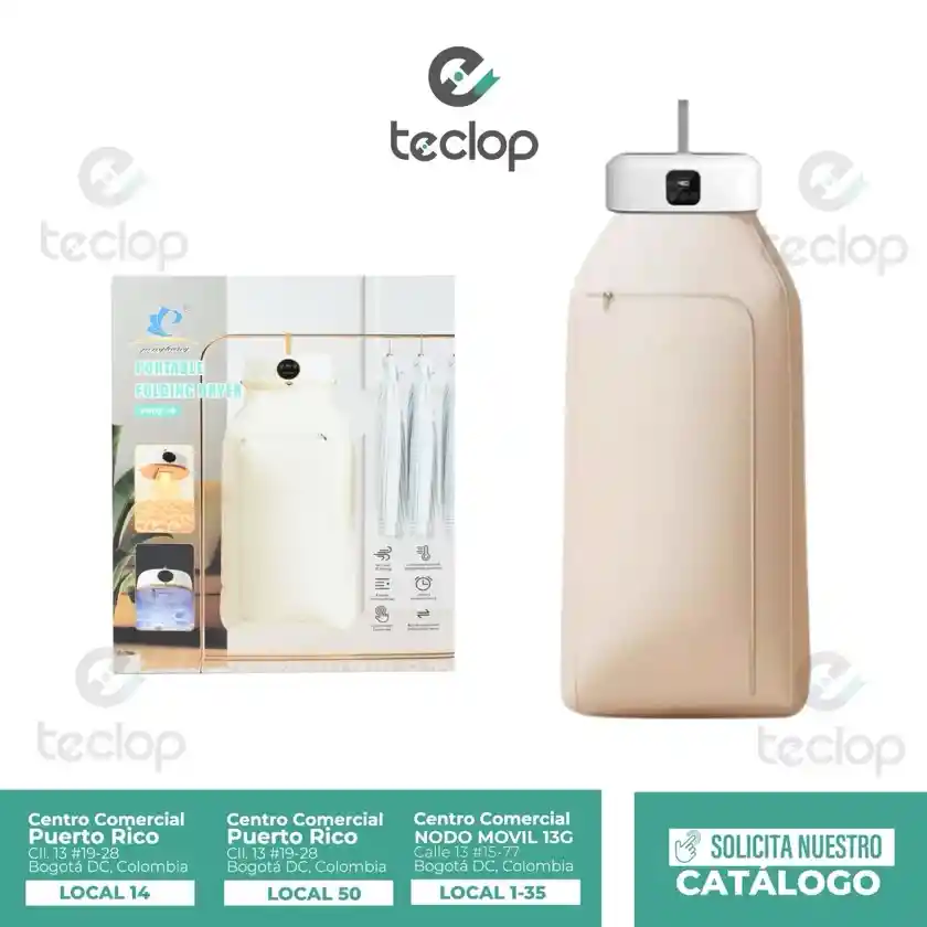 Secador portátil diseñado para colgar prendas directamente, ideal para secar ropa rápida y uniformemente en espacios reducidos. Su formato de gancho permite colgar camisas, pantalones o ropa delicada sin deformarla. Es compacto, ligero y práctico para viajes o uso diario en casa.