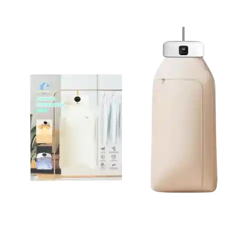 Secador portátil diseñado para colgar prendas directamente, ideal para secar ropa rápida y uniformemente en espacios reducidos. Su formato de gancho permite colgar camisas, pantalones o ropa delicada sin deformarla. Es compacto, ligero y práctico para viajes o uso diario en casa.