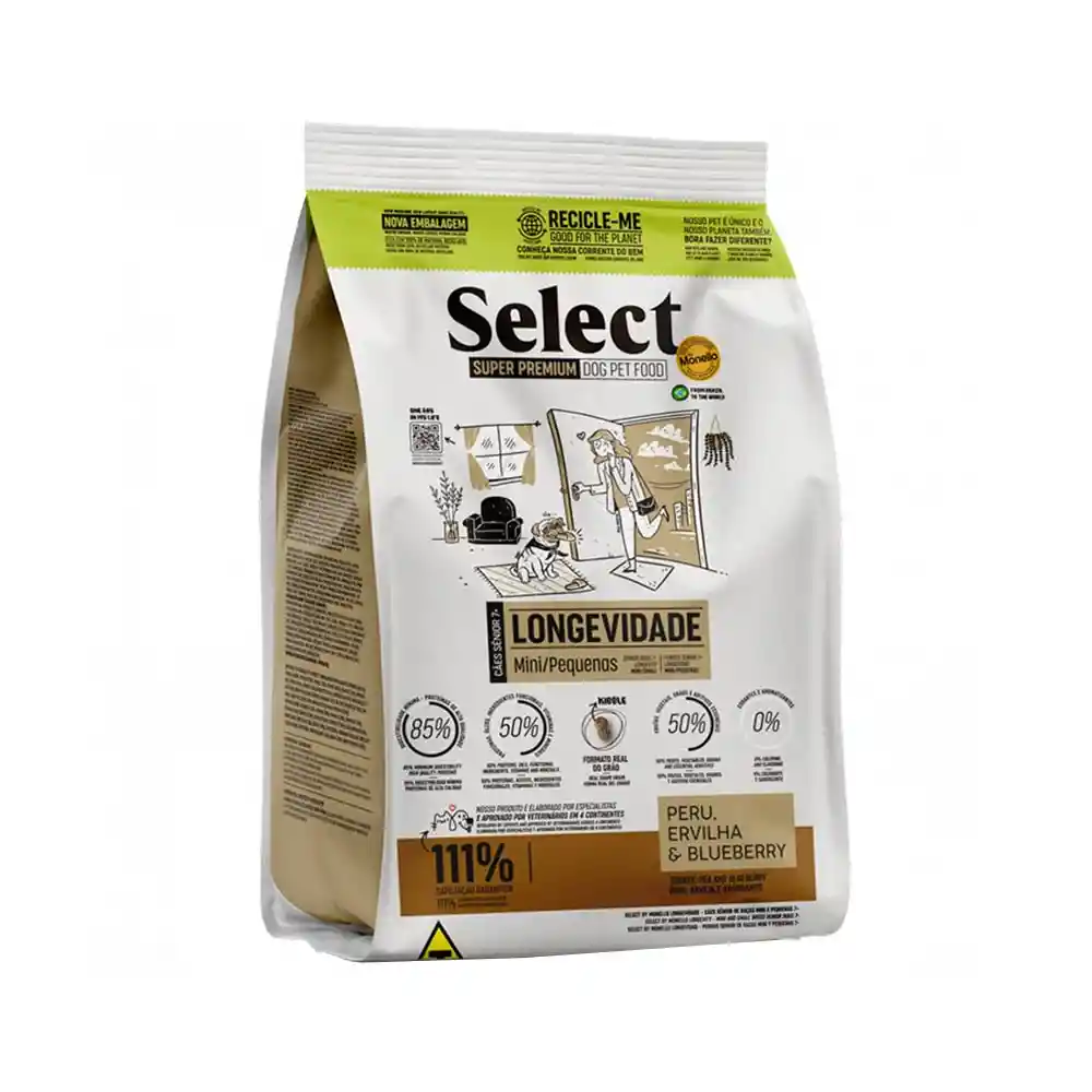 Ingredientes seleccionados fuentes de proteínas, aceites, ingredientes funcionales, vitaminas y minerales, mín. 50% (harina de vísceras de aves - mín. 23%, harina de carne y huesos de pavo - mín. 0,5%, aceite de aves, aceite de salmón, hidrolizado de hígado de aves, mezcla de huevos deshidratados, salvado de gluten de maíz, salvado de soya, biomasa de microalgas Schizochytrium sp. – mín. 0,13%, L-carnitina, levadura de cerveza inactiva deshidratada, mezcla prebiótica - mín. 0,1% - compuesto de: pared celular de levadura, galacto-oligosacáridos, fructo-oligosacáridos y levadura de caña de azúcar seca, hexametafosfato de sodio, sulfato de condroitina, sulfato de glucosamina, extracto de Yucca, lisina, vitaminas A, D3, E, C, K3, B1, B2, B6, B12, pantotenato de calcio, ácido fólico, ácido nicotínico, biotina, cloruro de colina, minerales cloruro de sodio, cloruro de potasio, sulfato de manganeso, sulfato de zinc, glicinato de zinc, sulfato de hierro, sulfato de cobre, yodato de calcio, selenito de sodio, selenio metionina). Frutas, vegetales, granos y aditivos esenciales, mín. 50% (grano de maíz, salvado de trigo, arroz quebrado, mezcla concentrada de frutas y vegetales deshidratados - compuesta por: harina de papa dulce - mín. 0,3%, manzanas, plátanos, arándanos - mín. 0,01%, zanahorias - mín. 0,03% y harina de arvejas - mín. 0,05%, pulpa de remolacha deshidratada - mín. 0,5% y aditivos antioxidantes BHA y BHT).