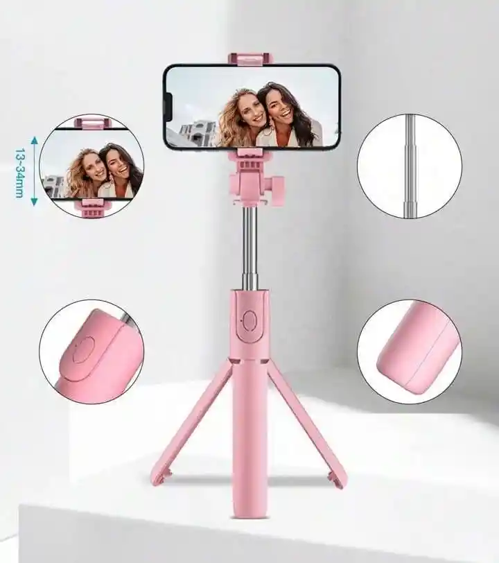 Selfie Bluetooth Con Tripode R1 Para Móvil Rotación 360° (rosado)