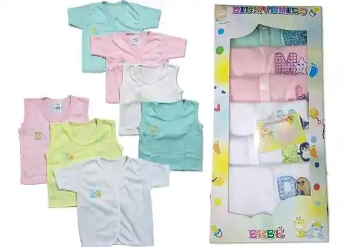 El Semanario Camisetas - Sacos para Bebé Niña x7 Unidades es un conjunto práctico, cómodo y adorablemente diseñado para cubrir las necesidades diarias de ropa de una bebé durante toda la semana. Está pensado tanto para uso diario como para complementar el ajuar del recién nacido. 👶 Características Principales Contenido: Incluye 7 unidades entre camisetas o sacos (también conocidos como baticas o batones), uno para cada día de la semana. Diseño: Colores suaves y femeninos como rosado, blanco, lila y estampados con detalles tiernos (flores, conejitos, corazones, etc.). Algunos modelos vienen con bordados, apliques o frases infantiles. Cierre con broches o botones al frente para facilitar el cambio de ropa. Material: Algodón 100% o mezclas hipoalergénicas, suaves y transpirables. Ideales para la piel delicada del bebé. Tallas comunes: Recién nacido (0-3 meses), aunque también se encuentra en tallas hasta 6 o 9 meses. Usos: Perfecto para dormir, estar en casa o salir en clima templado. Ideal como regalo para baby showers o primeros meses.