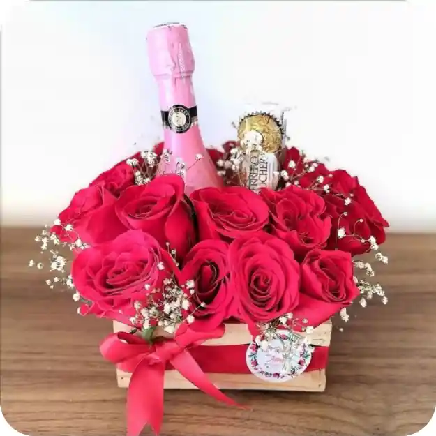 Una combinación perfecta para sorprender con estilo. Nuestro sembrado de rosas surtidas transmite emociones auténticas, acompañado de chocolates Ferrero para un toque dulce y una elegante botella de JP Chenet, ideal para brindar momentos inolvidables. Un detalle sofisticado que celebra el amor, la amistad o cualquier ocasión especial ✨💝