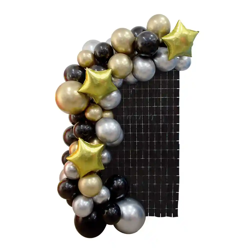 Semiarco Orgánico Fiesta Deluxe ✨ Crea una decoración elegante y moderna con el Semiarco Orgánico Fiesta Deluxe, ideal para cumpleaños, mesas principales y ambientaciones tipo backdrop. Este kit incluye globos en diferentes tamaños en colores Fashion y Reflex, estrellas metalizadas doradas y una cortina mural para un montaje completo y llamativo. Fabricado con globos biodegradables marca Sempertex, reconocidos por su excelente calidad y acabado profesional. Incluye (64 piezas): Globos de látex en diferentes tamaños en colores Fashion y Reflex (negro, dorado y plateado) 3 estrellas foil de 18” color dorado Cortina mural marca Sempertex Importante: La fotografía es ilustrativa. No incluye mobiliario ni artículos de decoración adicionales. El kit incluye únicamente los globos de látex en diferentes tamaños en colores Fashion y Reflex, las 3 estrellas foil de 18” color dorado y la cortina mural marca Sempertex. Total: 64 piezas.