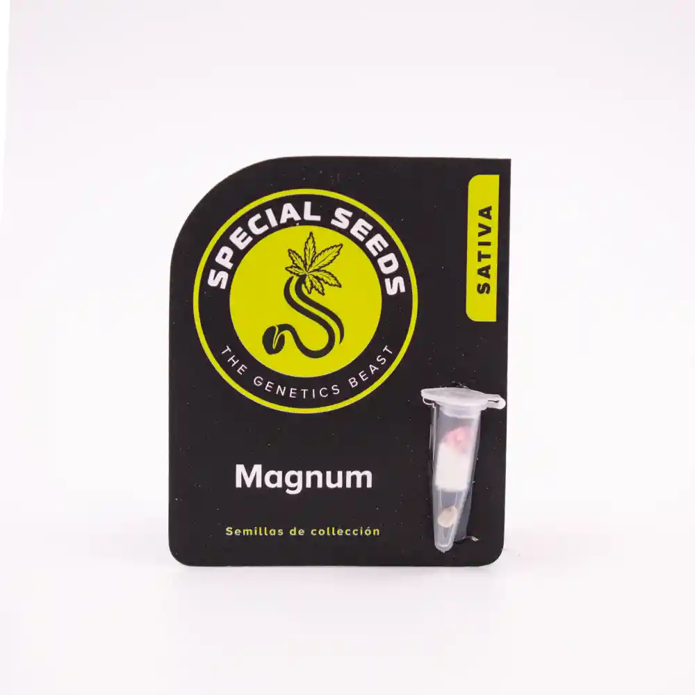 Su nombre se debe al famoso revolver conocido como Magnum, solo que en este caso la planta de marihuana seria su versión automática. La genética de las semillas feminizadas de la variedad Magnum Auto es única porque esta planta es lo que se denomina un híbrido a tres vías, es decir, que tiene en sus genes 50% Sativa, 30% Indica y 20% Ruderalis. Se caracteriza por dar un fuerte subidón cerebral, esto se debe en gran parte a su dominancia sativa. También se caracteriza por tener un gran tamaño.