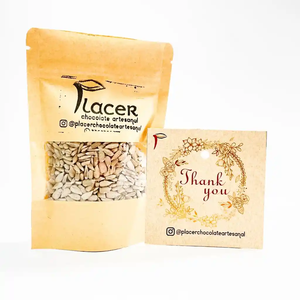 Snack Saludable de 60Gr, Rica en vitamina E Fuente de antioxidante Contiene minerales, fibra, proteína y grasas saludables. El placer de nuestras Semillas, es que son seleccionadas. GRATIS: Tarjeta de Thank You + Bolsa Tipo Kraft Eco