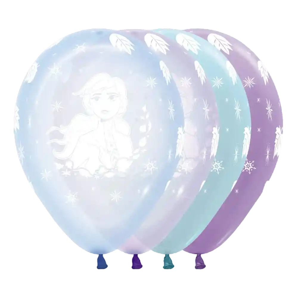 Bombas Frozen II R12, paquete x10 unidades. Si desea inflar sus bombas con helio certificado con flotacion de 3 dias aproximadamente por un costo adicional, puede escribir en el chat del pedido y con gusto le atenderemos.