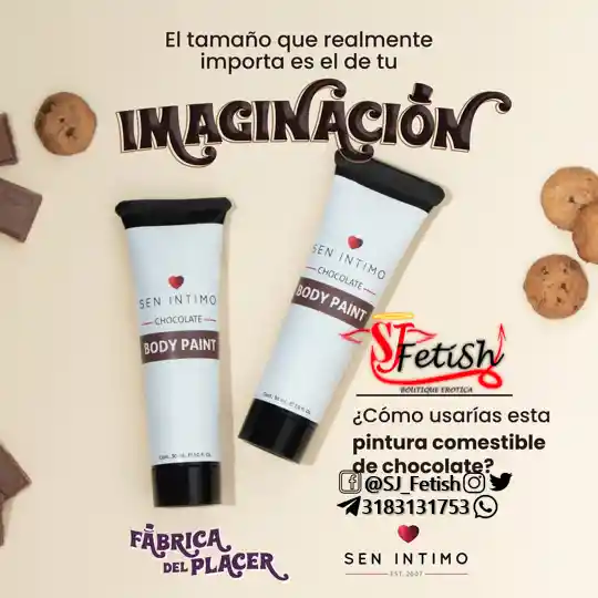 Pintura corporal con sabor y aroma a chocolate. Modo de uso: Aplíquelo en el área deseada. dibujando una figura en el cuerpo. luego bese suavemente hasta desaparecer