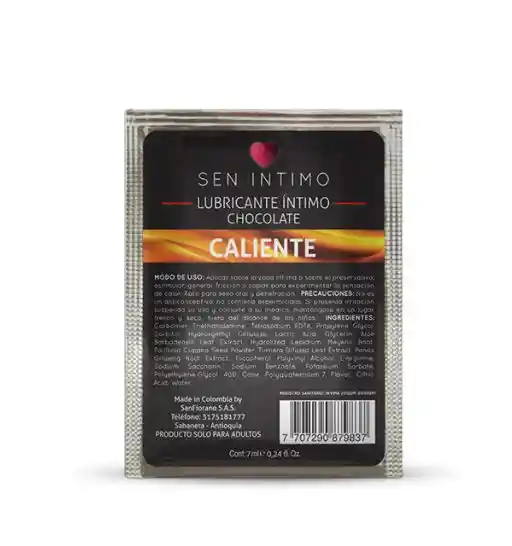 Sen Intimo Lubricante Caliente Chocolate Sachet 7Ml