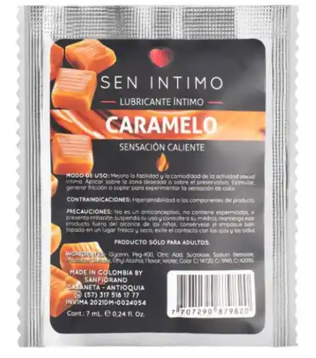 Este lubricante está diseñado para transformar tus momentos íntimos en una experiencia inolvidable. Ofrece una emocionante sensación de calor que intensifica la conexión y el placer, mientras que su delicioso sabor a caramelo añade un toque dulce que hace del sexo oral una experiencia aún más atractiva y placentera. ¡Ideal para aquellos que buscan un toque de diversión y sensualidad en sus encuentros íntimos! Características: • A base de agua • Sensación Caliente • Sabor: Caramelo • Apto para Sexo Oral y Penetración • Seguro con preservativos y juguetes • Libre de parabenos • Fácil de limpiar, No mancha y no es pegajoso • Textura ultra suave, agradable al tacto • Apto para todo tipo de pieles Registro Sanitario Invima: 2021DM-0024054 Modo de Uso: Aplica el lubricante en la zona íntima o sobre el preservativo. Para potenciar la sensación de calor, estimula, frota o sopla. Precauciones: En caso de presentar reacciones alérgicas o irritación, suspender el uso y consultar a un especialista. Mantener fuera del alcance de los niños y animales. No usar en caso de observar el empaque alterado o deteriorado. Consérvese en un ambiente fresco y seco (15° a 30° C). Confidencialidad: Tu producto llega en empaque 100% discreto, cuidamos tu privacidad.