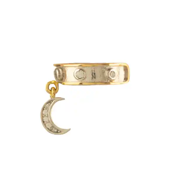 Ear cuff en plata ley 990 y bronce con baño de oro de 24k, rodio e incrustaciones de cristales color cristal.