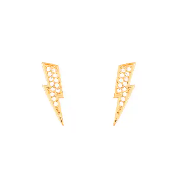 Aretes en plata ley 990 y bronce con baño de oro amarillo de 24k e incrustación de microcristales color cristal.