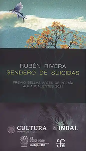 Sendero de suicidas, obra ganadora del Premio Bellas Artes de Poesía Aguascalientes 2021, construye un monumento a la vida al poetizar sobre la muerte. Rubén Rivera consigue sintetizar y trascender la impresión trágica de los instantes previos al suicidio con un lenguaje directo y otorga una renovada idea de la emoción y la contundencia del decir poético.