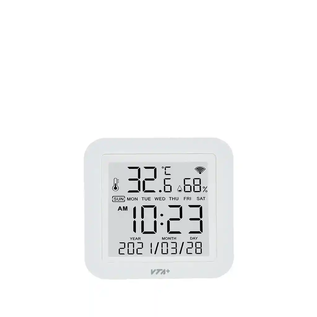 Haz que tu hogar sea inteligente y mantente cerca de los que más quieres. Detecta en tiempo real la temperatura de cualquier espacio con este sensor de temperatura y humedad automatizable desde la App VTA Casa Inteligente. Visualiza la información en su display de 2" y automatiza con otros productos Smart que requieran sensor de temperatura. Compatible con asistentes de voz Google Home y Alexa