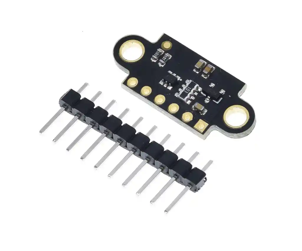 El VL53L0X de ST Microelectronics es un sistema de medición de tiempo de vuelo integrado en un módulo compacto. Rango de Medicion: 2mt El VL53L0 utiliza la tecnología FlightSense de ST para medir con precisión cuánto tardan los pulsos emitidos de luz láser infrarroja en llegar al objeto más cercano y reflejarse en un detector, por lo que puede considerarse un sistema lidar diminuto y autónomo. Esta medición de tiempo de vuelo (TOF) le permite determinar con precisión la distancia absoluta a un objetivo sin que la reflectancia del objeto influya en gran medida en la medición. El sensor puede informar distancias de hasta 2 m (6,6 pies) con una resolución de 1 mm, pero su alcance efectivo y precisión (ruido) dependen en gran medida de las condiciones ambientales y las características del objetivo, como la reflectancia y el tamaño, así como la configuración del sensor. (La precisión del sensor se especifica en un rango de +-+-3% en el mejor de los casos a más de ± 10% en condiciones menos óptimas). Las mediciones de rango están disponibles a través de la interfaz I2C (TWI) del sensor, que también se utiliza para configurar los ajustes del sensor, y el sensor proporciona dos pines adicionales: una entrada de apagado y una salida de interrupción. El VL53L0X es un gran circuito integrado, pero su pequeño paquete LGA sin cables dificulta su uso por parte del estudiante o aficionado típico. También opera a un voltaje recomendado de 2.8 V, lo que puede dificultar la interconexión para los microcontroladores que operan a 3.3 V o 5 V. Nuestra placa de conexión aborda estos problemas, lo que facilita el inicio del uso del sensor, mientras mantiene el tamaño general tan pequeño. como sea posible. PINOUT Salida de 2,8 V regulada por VDD. Casi 150 mA están disponibles para alimentar componentes externos. (Si desea omitir el regulador interno, puede usar este pin como una entrada de 2.8 V con el VIN desconectado). VIN Esta es la conexión principal de la fuente de alimentación de 2,6 V a 5,5 V. Los cambiadores de nivel SCL y SDA tiran de las líneas I2C a este nivel. GND La conexión a tierra (0 V) para su fuente de alimentación. Su fuente de control I2C también debe compartir un terreno común con esta placa. SDA IC2 con cambio de nivel; línea de datos C: HIGH es VIN, LOW es 0 V SCL IC2 con cambio de nivel; línea de reloj C: HIGH es VIN, LOW es 0 V XSHUT Este pin es una entrada de apagado activo bajo; la placa lo lleva a VDD para habilitar el sensor de forma predeterminada. Al colocar este pin bajo, el sensor se pone en espera de hardware. Esta entrada no se cambia de nivel. LA COMPRA INCLUYE: 1x SENSOR DISTANCIA VL53L0X 2mt