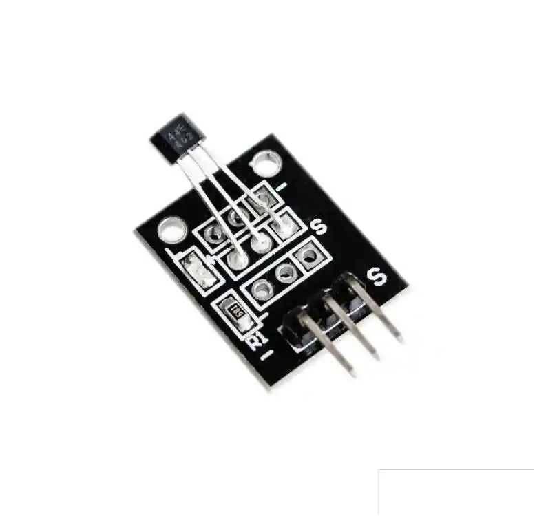 *********ESTE MODULO TRAE EL CHIP a3144********* El KY-003 es un interruptor magnetico. Si no hay campo magnetico presente, la linea de señal del sensor es ALTA (3.5 V). Si se presenta un campo magnetico al sensor, la linea de señal se pone BAJA, al mismo tiempo que se enciende el LED en el sensor. La polaridad del campo magnetico influye en la accion de conmutacion. La parte frontal del sensor necesita la polaridad opuesta a la parte posterior del sensor para encenderse. Estos interruptores de efecto Hall son circuitos integrados monoliticos con especificaciones magneticas mas estrictas, diseñados para funcionar de manera continua a temperaturas extendidas de hasta + 150 C, y son mas estables con los cambios de temperatura y voltaje de suministro. La caracteristica de conmutacion unipolar hace que estos dispositivos sean ideales para usar con una barra simple o un iman de barra. Los cuatro dispositivos basicos (3141, 3142, 3143 y 3144) son identicos, excepto para los puntos de conmutacion magnetica. Cada dispositivo incluye un regulador de voltaje para operacion con voltajes de alimentacion de 4.5 a 24 voltios, diodo de proteccion de bateria inversa, generador de voltaje Hall cuadratico, circuito de compensacion de temperatura, amplificador de señal pequeña, disparador Schmitt y una salida de colector abierto para hundirse hasta 25 mA. Con una salida adecuada, se pueden usar con circuitos logicos bipolares o CMOS. El primer caracter del sufijo del numero de pieza determina el rango de temperatura de funcionamiento del dispositivo. El sufijo E es para el rango de temperatura de la industria automotriz e industrial de -40 C a + 85 C. El sufijo "L" es para el rango de temperatura militar y automotriz de -40 C a + 150 C. Marca: Keyes Modelo: KY-003 Compatibilidad: Arduino De color negro Material: FR4 Voltaje de funcionamiento: 5v DC Voltaje de alimentacion, VCC: 28 V Voltaje de bateria inversa, VRCC: -35 V Densidad de flujo magnetico, B: ilimitada Tension de salida OFF, VOUT: 28 V Voltaje de salida inverso, VOUT: -0.5 V Corriente de salida continua, IOUT: 25 mA Rango de temperatura de funcionamiento, TA: Sufijo E: -40 C a + 85 C: Sufijo L: -40 C a + 150 C Rango de temperatura de almacenamiento, TS: -65 C a + 170 C Material: PCB Longitud: 19mm Ancho: 15mm Caracteristicas: Temp. Superior Estabilidad para aplicaciones automotrices o industriales Operacion de 4.5 V a 24 V ... solo necesita un suministro no regulado Salida de 25 mA de colector abierto ... Compatible con Digital Logic Proteccion inversa de la bateria Activar con imanes permanentes pequeños, disponibles comercialmente Fiabilidad de estado solido Talla pequeña Resistente al estres fisico Pin (pin medio) + 5V Señal de pin S. LA COMPRA INCLUYE: *********ESTE MODULO TRAE EL CHIP a3144********* 1X SENSOR EFECTO HALL KY003