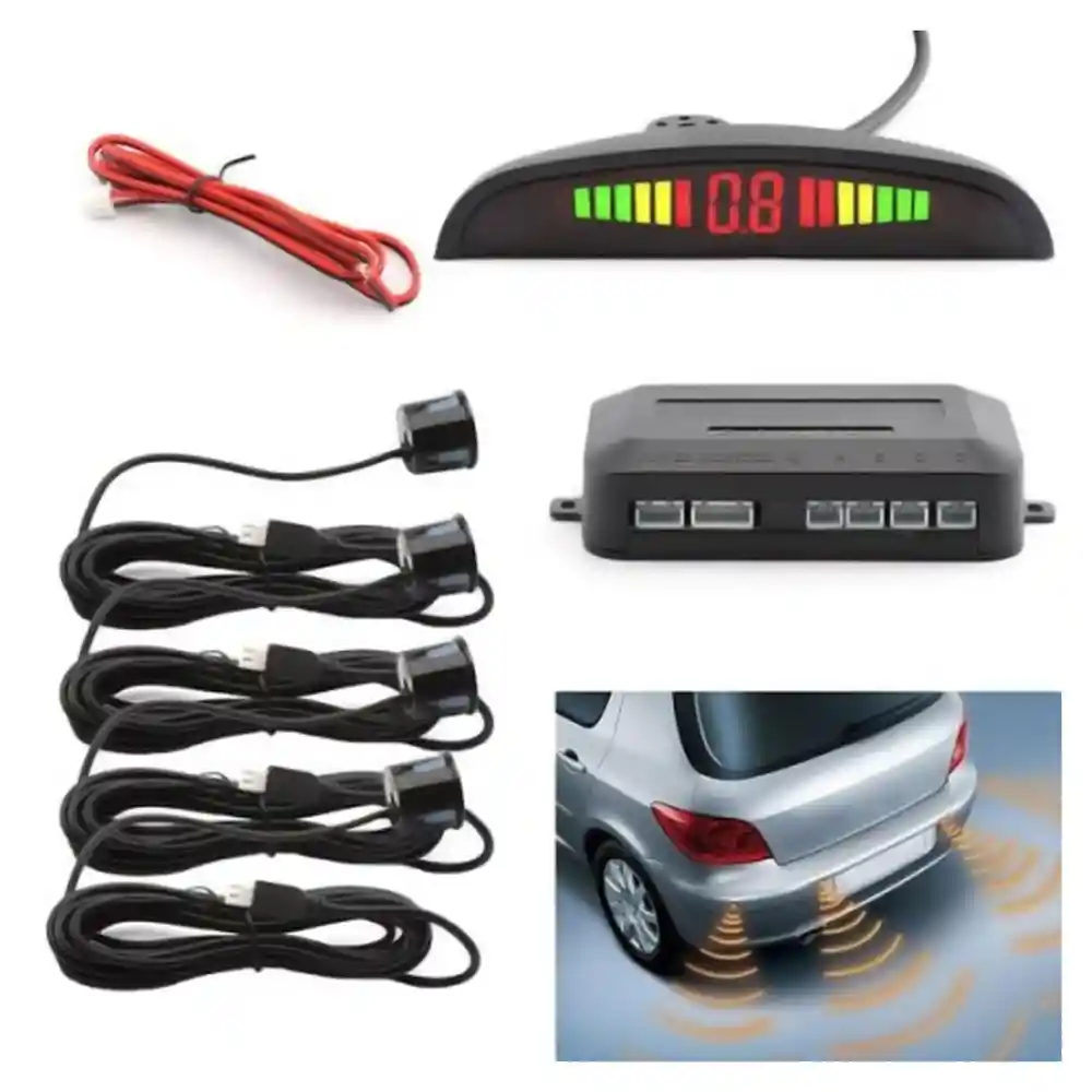 Sensor De Reversa Y Parqueo X 4 CPU doble y conjunto de chips avanzado para una mejor cobertura y detección (0-2,5 m). Con pantalla LED de color digital (número y luz). Ayuda a prevenir colisiones peligrosas y costosas. Ayude a brindar mayor seguridad a los pasajeros, peatones y familiares que sucedan estar alrededor del vehículo en movimiento.Detecta también a niños pequeños y muros bajos.Anticongelante y resistente a la lluvia.Fácil de instalar.Se incluye un cabezal de taladro de sierra.Voltaje de la tarifa: 12V DCRango operativo de velocidad: 10,5 V - 16 V CCTasa de corriente: 100mA - 300mADistancia de detección: 0,3 - 2,0 mFrecuencia ultrasónica: 40 KHzTemperatura de trabajo del módulo de control: -30-80 grados centígradosTemperatura de trabajo de la pantalla: -20-70 grados Celsius