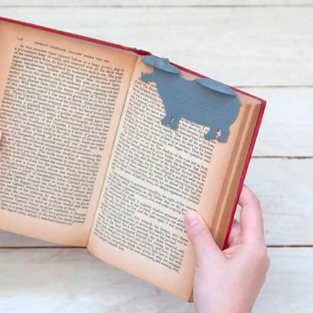 Ya han quedado atrás esos días donde dejabas la página que estabas leyendo con hojas de orejas de perro o el uso de recibos para mantener ese capítulo en tu libro. Este curioso hipopótamo nadara graciosamente a través de las páginas indicándote en donde dejaste la lectura. Color: gris. Tamaño: 10 x 2 x 5 cm. Regalos originales. Regalos funcionales. Regalos divertidos. Pelegdesing