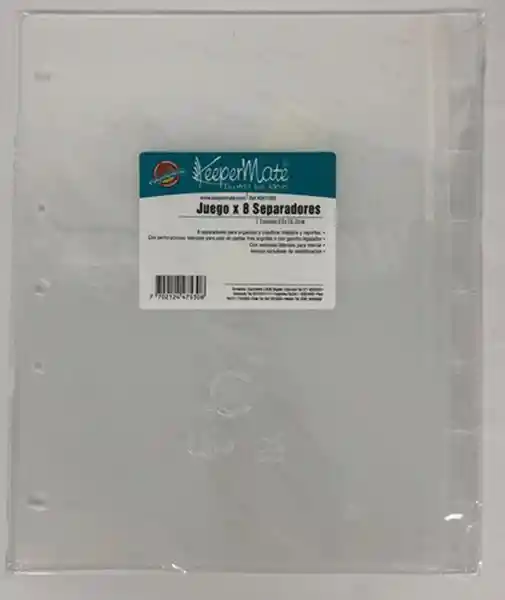 Guía clasificadora ó separador de materia plástico x 8 traslucido; ideal para la organización de tus trabajos y presentaciones. Perforaciones para las pastas de tres argollas y para las de dos argollas.