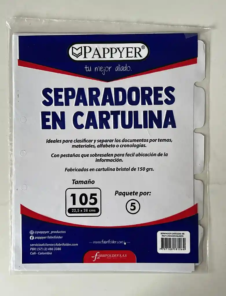 SEPARADORES CARTULINA BLANCA X5 COD.4695