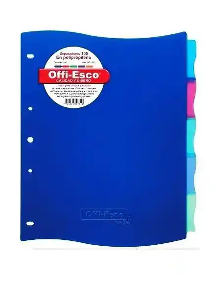 Separadores en Propileno Tamaño Carta marca Offi Esco Ref. OE-892 EAN 7707188186023
