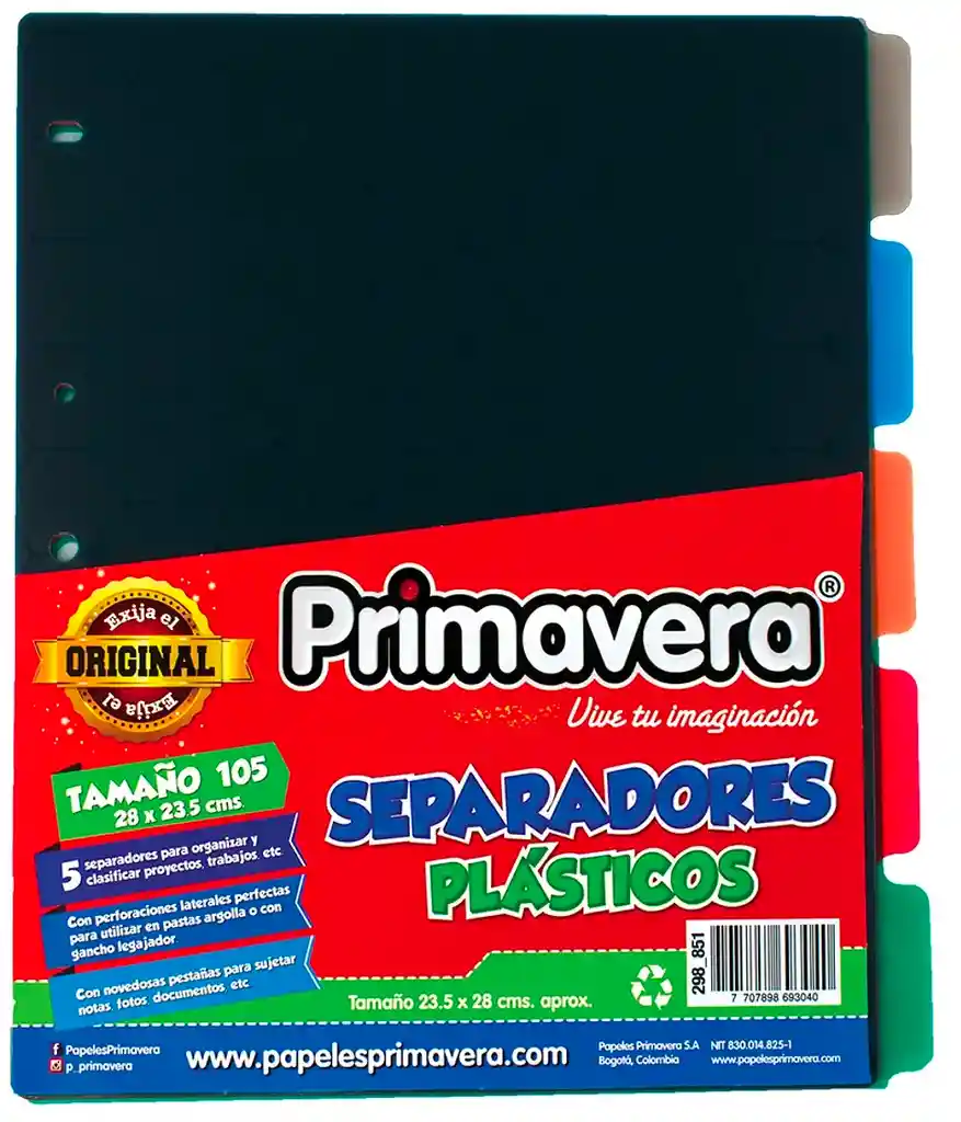 Separadores Plasticos De Materias, Tamaño Carta X5 - primavera