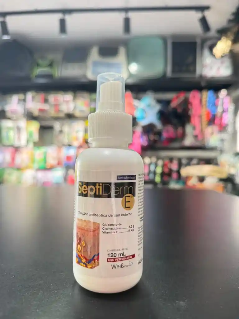 antiséptico tópico veterinario para perros, gatos y otros animales, formulado con clorhexidina (antiséptico y desinfectante) y vitamina E (antioxidante, antiinflamatorio y cicatrizante).