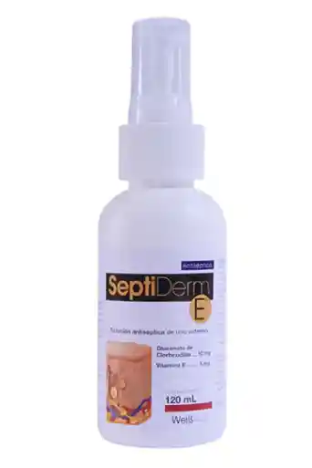 SEPTIDERM E PARA PERROS Y GATOS es un antiséptico a base de Clorhexidina y Vitamina E, indicado para perros, gatos, equinos, aves y cerdos. Tiene propiedades antisépticas y desinfectantes, presenta acción bactericida y bacteriostática frente a gran variedad de variedad de bacterias, tanto Gram positivas como Gram negativas. Ideal para el tratamiento de Hongos y Levaduras y en patologías como Xerodermia, hiperqueratosis, dermatitis aguda húmeda, dermatitis atópica, quemaduras superficiales, úlceras cutáneas, onicosquisis y en general en todas las patologías de la piel, en donde un proceso inflamatorio se encuentra activado. ideal como antiséptico de la piel, erosiones, heridas superficiales, quemaduras leves, raspaduras. Su contenido de vitamina E es un antioxidante natural, que conserva los ácidos grasos esenciales, tiene acción antiinflamatoria y facilitadora de la cicatrización.