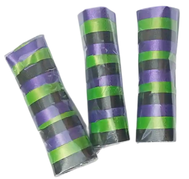 Serpentina Satinada Negro Morado Verde viene paquete x3 unidades Decora tus celebraciones con estas serpentinas satinadas de fácil uso, para pegar en el techo o en paredes, la puedes cortar en diferentes tamaños para decorar diferentes espacios de tu celebración.
