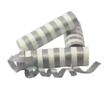 🎉 Serpentina Satinada Plateado y Blanco Rayas Tubo x3 🎊 Agrega brillo y elegancia a tus celebraciones con la serpentina satinada plateado y blanco en rayas. Su diseño brillante y festivo es perfecto para decorar fiestas, cumpleaños, bodas o eventos especiales. Cada tubo contiene 3 rollos de serpentina listos para usar, ideales para crear ambientes llenos de luz, alegría y estilo. ✨
