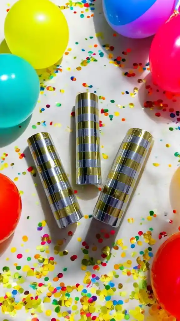 Pack de 3 Tubitos ●Serpentinas. Metalizadas Color Dorado/Plateado de 4m ●Cada tubo trae 12 Aritos