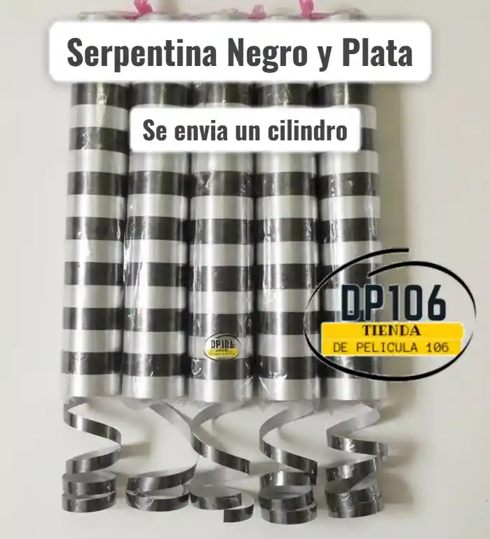 un cilindro de serpentinas Plata y negro