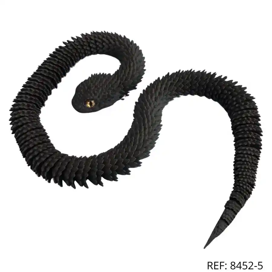 Serpiente negra de goma realista, perfecta para bromas o decoración.