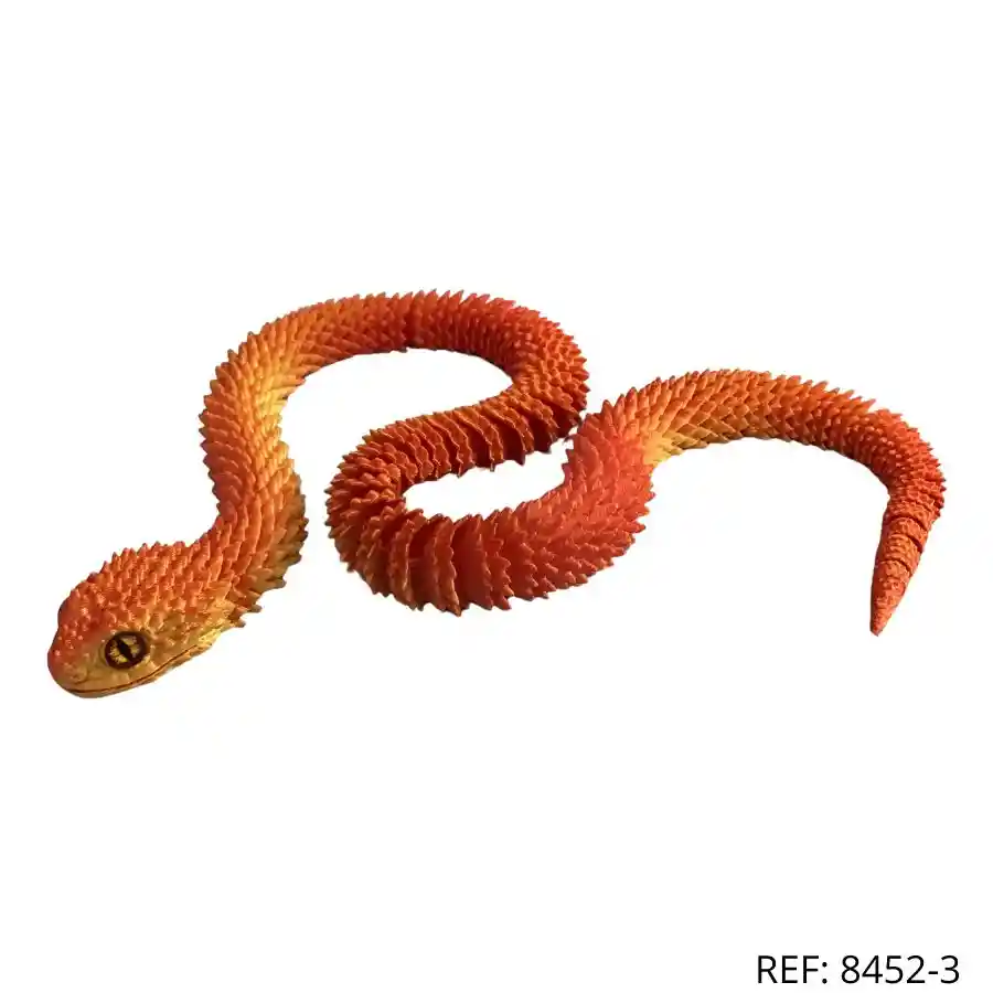 Serpiente roja y naranja, articulada y texturizada, ideal para jugar o decorar