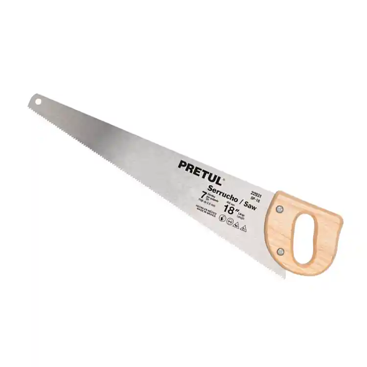 Serrucho con mango de madera de 18" Fabricados en acero alto carbono templado.