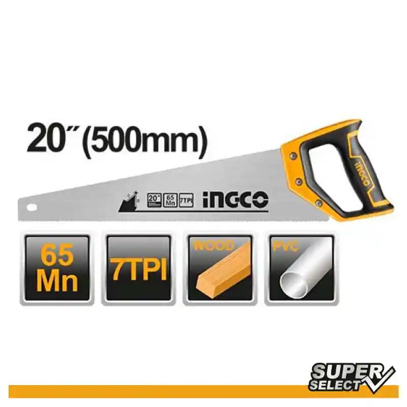 "Tienda Oficial de Repares S.A. - Todo en Ferretería SERRUCHO 20'' HHAS08500 INGCO El serrucho de 20 pulgadas HHAS08500 de Ingco es una herramienta imprescindible para profesionales en ventas y marketing. Diseñado con precisión y durabilidad, este serrucho ofrece un rendimiento excepcional en trabajos de corte. Su tamaño de 20 pulgadas lo hace ideal para proyectos que requieren un mayor alcance y capacidad de corte. Con su hoja afilada y resistente, este serrucho proporciona cortes precisos y eficientes en una variedad de materiales. Además, su mango ergonómico ofrece comodidad durante el uso prolongado. Con el serrucho de 20 pulgadas HHAS08500 de Ingco, podrás realizar cortes suaves y limpios, obteniendo resultados superiores y maximizando la eficiencia en tus proyectos de construcción, carpintería o bricolaje. Especificaciones Técnicas: * Longitud: 500mm, * Espesor: 0.9mm, 7TPI * Con protector de dientes * Tratamiento térmico * Embalado por tarjeta de papel RECUERDA: * Somos una empresa comercializadora de productos en líneas de Ferretería Liviana, Tornillería, Repuestos de Automotor, Elementos para la Seguridad y Construcción, Herramientas Agrícolas, Manuales y Eléctricas. * La mayoría de todos nuestros productos tienen garantía. * Todos nuestros productos son nuevos, nunca encontrarás artículos usados o desgastados, todos están en perfectas condiciones y el envío lleva un proceso de empaque adecuado. * Todos nuestros productos están en constante proceso de prueba de calidad por parte de nuestros proveedores. * Contamos con una excelente reputación de distribuidores ferreteros en distintas partes del país. * Encuéntranos o Contáctanos en nuestras redes sociales y pagina web. "