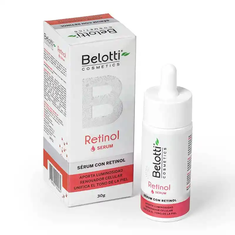 SÉRUM CON RETINOL BELOTTI 30 G : Renueva Tu Piel con el Sérum de Retinol de Belotti Transforma tu rutina de cuidado facial con el sérum de Belotti, enriquecido con retinol, el activo estrella en el rejuvenecimiento de la piel. Diseñado para reducir visiblemente las arrugas y líneas de expresión, cerrar los poros y aportar una sensación de frescura inigualable, este sérum es la clave para una piel más lisa, uniforme y radiante. ¿Qué hace único al sérum de retinol de Belotti? – Reduce Arrugas y Líneas de Expresión: Su acción regeneradora combate los signos visibles del envejecimiento, dejando tu piel más suave y rejuvenecida. – Cierre de Poros: Promueve una textura más uniforme y un aspecto impecable. – Frescura: Su fórmula revitalizante deja una sensación fresca y renovada tras cada uso. Modo de Uso 1. Comienza Gradualmente: Aplícalo **3 veces por semana y aumenta su uso progresivamente para que tu piel se adapte al retinol. 2. Uso Nocturno: Úsalo por la noche, después de limpiar tu rostro, para aprovechar al máximo su poder regenerador mientras duermes. 3. Aplica unas gotas sobre la piel limpia y seca. Distribúyelo suavemente en rostro y cuello, evitando el área del contorno de ojos. 4. Completa con tu crema hidratante para potenciar sus beneficios.