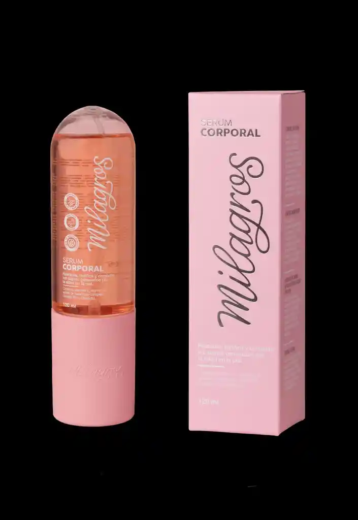 SERUM CORPORAL MILAGROS 120 ML : El Serum corporal de Milagros ayuda a controlar las estrias y manchas. Restaura, tonifica y combate los signos generados por la edad de la piel. Con una textura ligera para su fácil absorción. Beneficios Control de estrias Control de manchas Textura ligera Combate los signos generados por la edad en la piel Tonifica la piel Modo de uso Aplique directamente en la piel en la zonas donde desea obtener resultados Recuerde hacerlo diariamente como tratamiento para obtener los beneficios de la formulación. En casos de resequedad extrema como en los talones o causada por el embarazo, aplique dos veces al dia. Antes de usar realice prueba de alergia en los antebrazos. Ideal para todo tipo de piel ADVERTENCIAS Y PRECAUCIONES: USO COSMÉTICO. USO EXTERNO. NO ES UN ALIMENTO. No ingerir, mantener alejado de los niños y mascotas. Evite el contacto directo con los ojos, en caso de contacto enjuagar con abundante agua. En caso de que presente algún tipo de alergia al producto suspenda su uso inmediatamente y consulte a su médico. Manténgase en un lugar fresco y seco protegido de la luz, a temperatura ambiente. El producto puede presentar cambios de color por contener extractos y material de origen natural, lo cual no afecta las propiedades del producto. No aplicar sobre la piel irritada o lastimada.