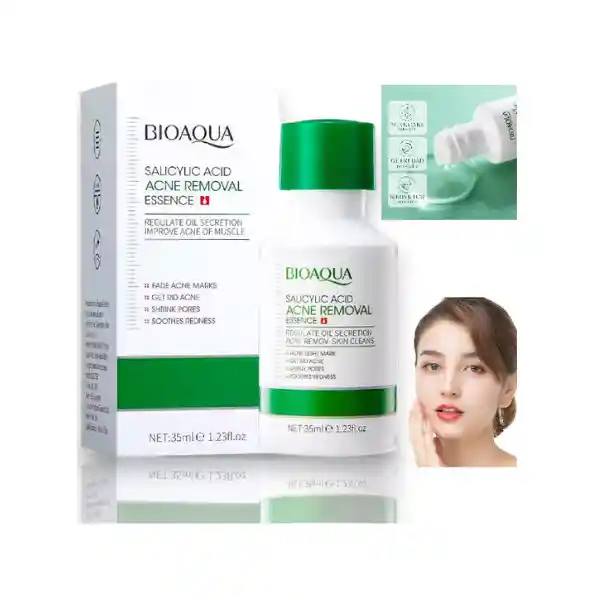 El SERUM FACIAL CON ÁCIDO SALICILICO PARA ELIMINAR EL ACNE 35ML BIOAQUA es tu solución ideal para combatir esos molestos brotes. Su fórmula ligera y potente, enriquecida con ácido salicílico, penetra profundamente en los poros, eliminando impurezas y reduciendo la apariencia de granos y espinillas. Este serum se aplica fácilmente y se absorbe rápidamente, dejando tu piel fresca y libre de grasa. Perfecto para todo tipo de piel, desde la primera aplicación notarás cómo tu rostro se siente más limpio y equilibrado. ¡No te quedes sin probarlo! Dale a tu piel el cuidado que necesita con el SERUM FACIAL BIOAQUA y deja que tu belleza brille con toda su fuerza.