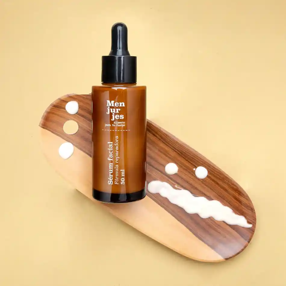 Este serum reparador de Menejurjes te brindará hidratación profunda, es ideal para piel sensible (rosácea/dermatitis). Fortalece la barrera, suaviza líneas y ayuda a disminuir manchas y rojeces. Sérum nutritivo con una fórmula reparadora compuesto de ingredientes súper hidratantes, regeneradores celulares y antiinflamatorios que va genial para recuperar un aspecto saludable en tu piel. Es una mezcla súper concentrada de aloe vera, aceites vegetales y esenciales que ayudan a prevenir y atenuar signos de envejecimiento como manchas y arrugas. Contiene también ácido hialurónico, colágeno y plantas de regeneración celular como el incienso y la centella asiática. Este sérum facial puede usarlo todo el mundo. Y además, ¡se absorbe fácilmente! Ingredientes: con centella asiática, caléndula, pepita de uva, ácido hialurónico y colágeno. Inci: Aloe Barbadensis Extract, Calendula Officinalis Flower Oil, Vitis Vinifera Seed Oil, Sesamum Indicum Seed Oil, Simmondsia Chinensis Seed Oil, Centella Asiatica Extract, Chamomilla Recutita Extract, Tocopherol, Boswellia Carterii Oil, Lavandula Angustifolia Oil, Cetearyl Olivate, Sorbitan Olivate, Cocamidopropyl Betaine, Hydrolyzed Collagen, Hyaluronic Acid, Sodium Benzoate, Glycerin. Forma de uso: AM/PM • 2–4 gotas. Este sérum se puede usar en la rutina de día y/o de noche. En el día nutrirá y te protegerá de agentes externos como el sol, viento, polvo, etc… y en la noche hará una nutrición profunda, ya que la piel está en descanso. No es necesario usar demasiado producto porque los Menjurjes no contienen agua, son súper concentrados y con solo un poco sentirás la nutrición profunda. Lava muy bien tu cara y manos, pon de 2 a 3 gotas del producto en tu piel y con los dedos desliza suavemente cubriendo toda tu cara y cuello y espera unos minutos para que la piel lo absorba antes de aplicar otro producto de tu rutina de cuidado. Si te queda exceso, la próxima vez pon una gota menos y si sientes que no es suficiente pon una gota más. Evita tocar el gotero con tus dedos o rostro para prevenir contaminación del producto que queda en el frasco. Textura: cremosa, ligera y satinada • se absorbe en minutos • sin película Contenido: 50 ml Cuidados: Mantenlo en un lugar seco y a la sombra para que no pierda sus propiedades nutricionales. Si bien usamos conservantes de origen natural, sigue siendo un producto 100% natural por lo que puede llegar a descomponerse si no se maneja adecuadamente. Después de abierto tiene 6 meses de vida.