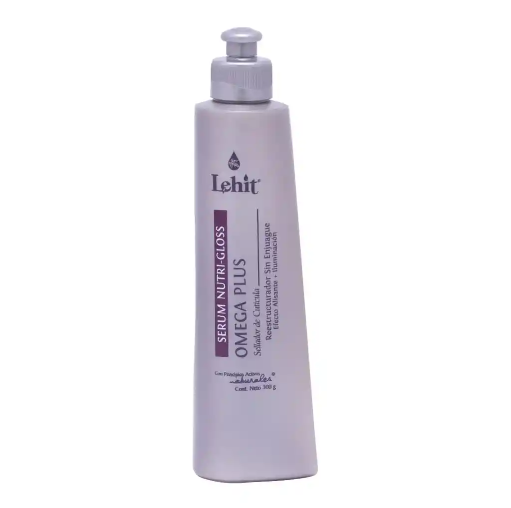 SERUM GLOSS OMEGA PLUS LEHIT 300 ML : Reestructurador y sellador de cutícula protege el cabello de la humedad y lo deja con aspecto natural reduciendo el encrespamiento y brindando efecto alisante.