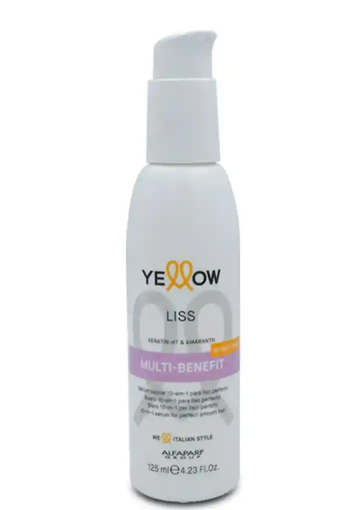El Yellow Liss Multi-Benefit de 125 ml es el producto "estrella" y más versátil de la línea. Se trata de un suero en crema (leave-in) que no requiere enjuague y que ofrece 10 beneficios reales en un solo paso. Es el toque final indispensable para un acabado de peluquería. Los 10 Beneficios Clave Este producto es conocido como un "todo en uno" porque actúa sobre múltiples necesidades del cabello: Protección Térmica: Blindaje contra el calor del secador y la plancha. Control del Frizz: Mantiene el cabello disciplinado todo el día. Efecto Anti-Humedad: Evita que el pelo se "infle" en climas húmedos. Acción Desenredante: Facilita el peinado, evitando el quiebre. Filtro UV: Protege el color y la fibra de los daños del sol. Efecto Suavizante: Deja una textura de seda al tacto. Brillo Extremo: Aporta una luminosidad inmediata. Sellado de Cutículas: Ayuda a cerrar las puntas abiertas. Facilita el Brushing: Reduce el tiempo de secado y peinado. Nutrición sin Peso: Hidrata profundamente sin dejar el cabello grasoso o pesado. Ingredientes y Tecnología Al igual que el resto de la línea, utiliza la combinación ganadora de Alfaparf: Keratin-HT: Reconstruye la queratina natural del cabello. Aceite de Amarante: Proporciona brillo y una barrera protectora contra el encrespamiento. Atributos de Composición y Ética Marca Profesional: Calidad garantizada por Alfaparf Milano. Libre de Crueldad: No testeado en animales. Formato Compacto: Su presentación de 125 ml es ideal para llevar en el bolso o de viaje. Modo de Uso Sobre Cabello Húmedo: Aplica una pequeña cantidad (el tamaño de una avellana) de medios a puntas antes de usar el secador o dejar secar al aire. Ayuda a controlar la forma y proteger del calor. Sobre Cabello Seco: Usa una cantidad mínima para sellar puntas, dar brillo instantáneo o bajar esos pelitos rebeldes (frizz) que aparecen durante el día. ¿Para quién es? Es ideal para todo tipo de cabello que busque control, pero es el "santo grial" para quienes tienen alisados permanentes y quieren mantener las puntas sanas y el liso perfecto por más tiempo. Running Shopping, Somos especialistas en Belleza ; productos 100% Originales , garantizados y entregas rapidas !