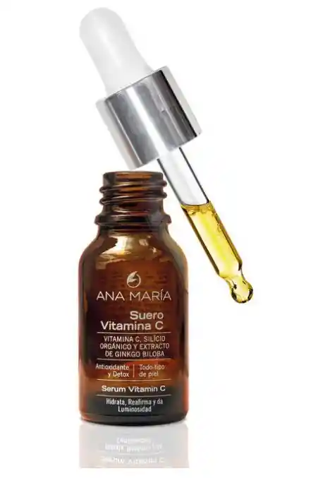 Gracias a su fórmula con Silanol, es posible tener una Vitamina C estabilizada con mayor eficacia en la piel. El Silicio Orgánico junto con los demás ingredientes, logran una sinergia que aporta mayor efectividad a nivel celular. Beneficios Efecto Booster (aumenta la viabilidad celular). Ejerce una función antioxidante y Detox. Reestructura la piel. Mejora la apariencia, aportando luminosidad. Hidrata y reafirma la piel. Protege de los radicales libres. Modo de empleo Después de limpiar la piel, aplicar 4 a 5 gotas sobre cara y cuello, y extender con la yema de los dedos dando toques circulares hasta que el producto se absorba totalmente. Se recomienda alternar los días de uso en la primera semana. Complementando tu rutina diaria, protegiendo tu piel de los rayos solares, con el protector solar crema gel SPF 20 Ana Maria y el contorno de ojos con Q10 Ana Maria.