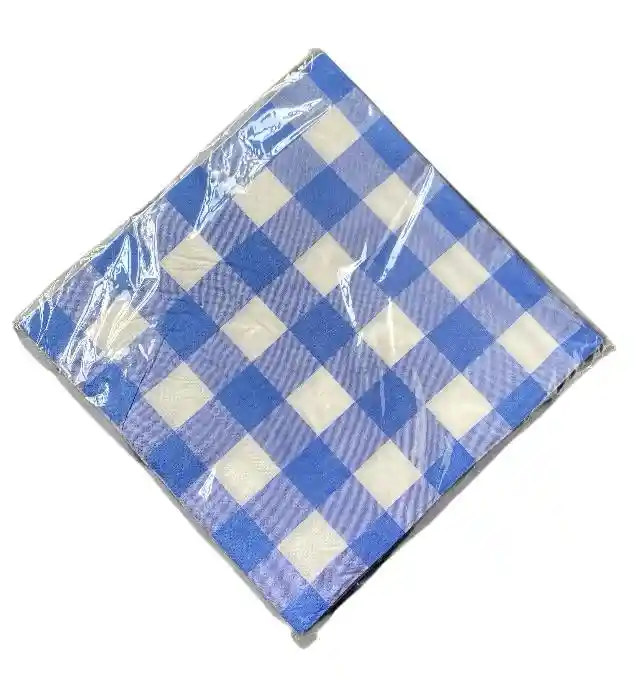 SERVILLETAS DE PAPEL CUADROS AZULES Y BLANCOS HOJA DOBLE 16 X 16 CMS