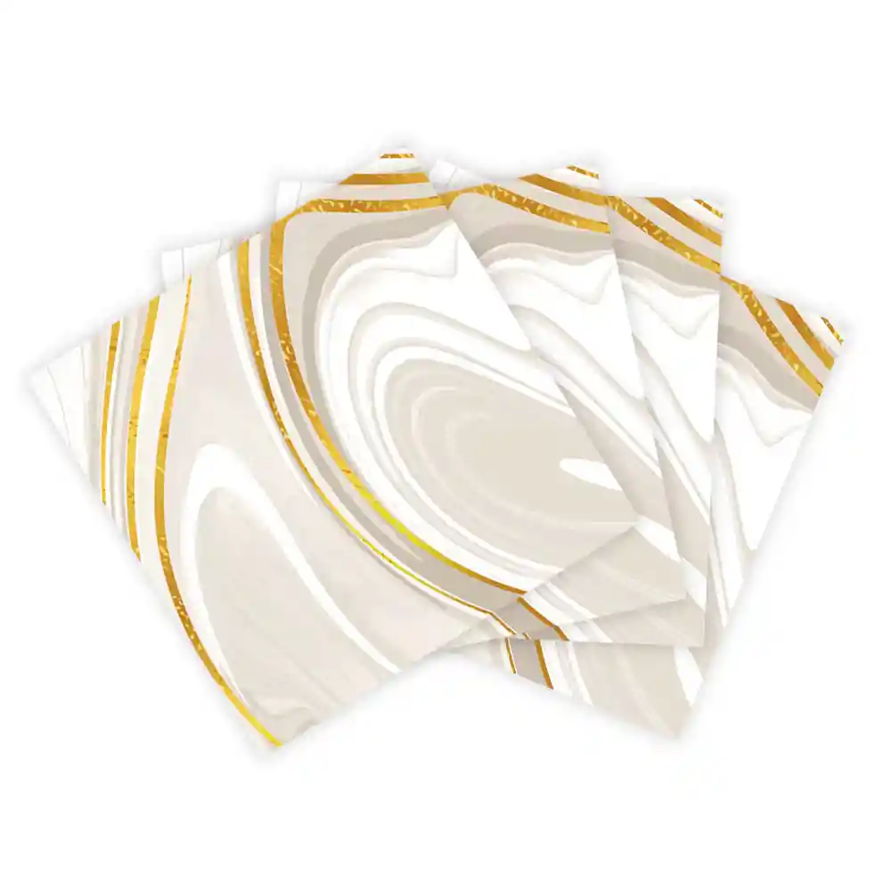 Servilleta Pequeña Marmoleado Blanco Dorado x 16 Unidades Sempertex