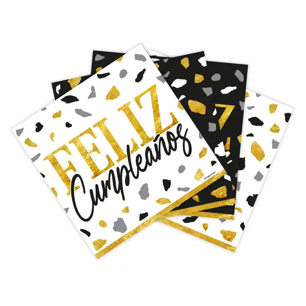Servilleta Pequeña Terrazo Dorado Negro x 16 Unidades Sempertex