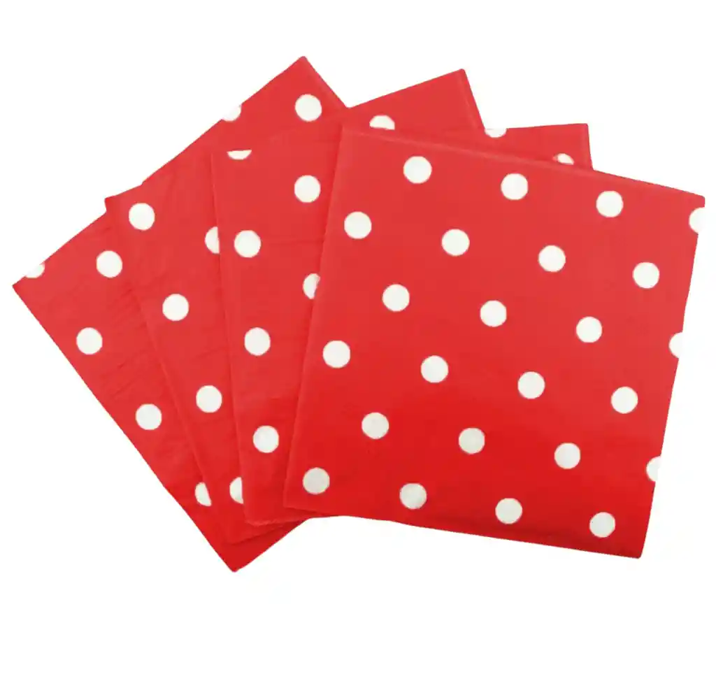 Servilleta Roja Con Puntos Blanco x 20 Pcs, 17*17 Cms, Para Cumpleaños, fiestas