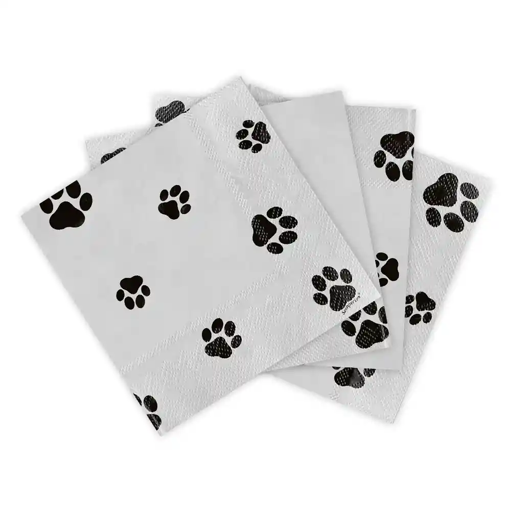 Paquete x16 servilletas blancas con estampado de huellitas Servilletas para fiesta Servilletas con estampado
