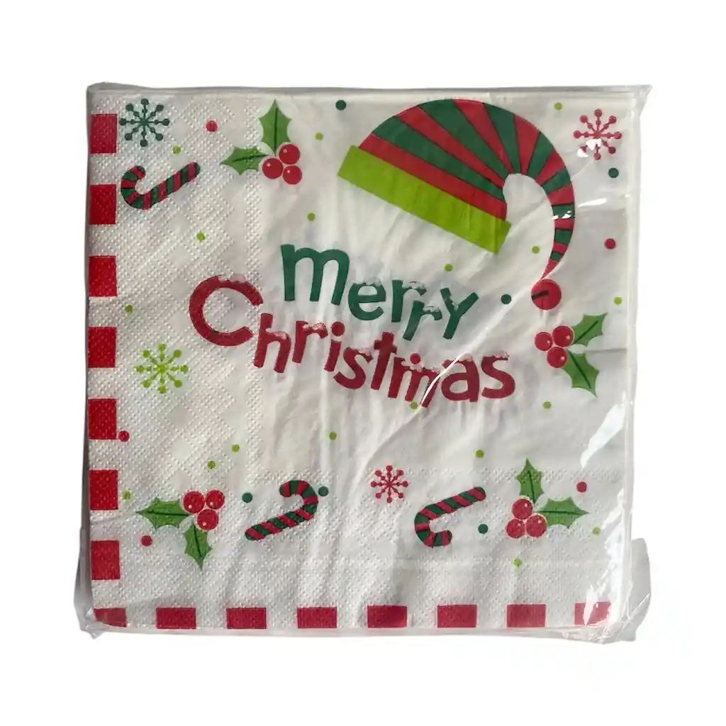 SERVILLETAS DE PAPEL HERMOSO DISEÑO FONDO BLANCO GORRO Y BASTONES 32 X 32 CMS PAQUETE X 20 UNDS