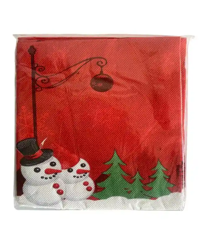 SERVILLETAS DE PAPEL 33 X 33 CMS 3 CAPAS, SUAVES Y ABSORBENTES DECORACION MUÑECOS DE NIEVE FONDO ROJO PAQ X 20 UNDS