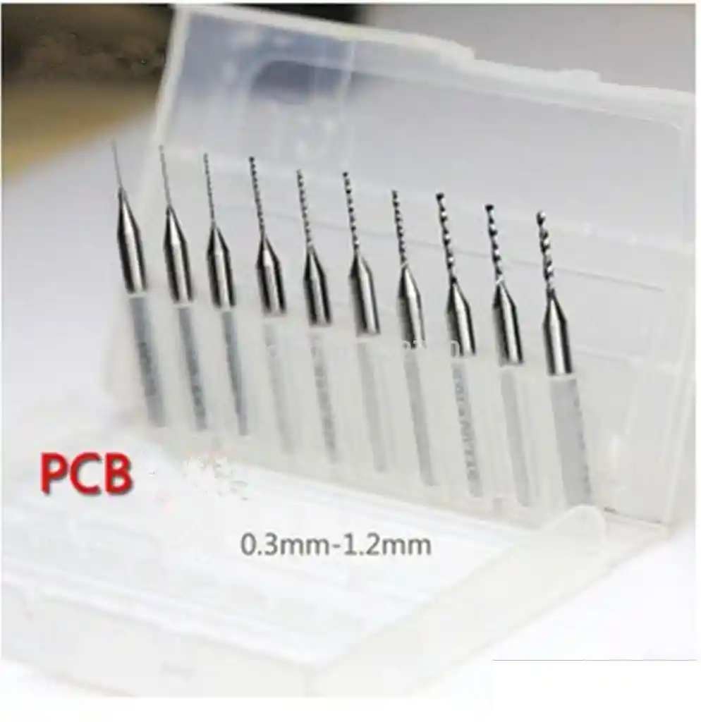 Set Brocas para perforar circuitos impresos - PCB. Diametro del Vastago: 3mm El kit contiene las brocas de medida: 0.30mm 0.40mm 0.50mm 0.60mm 0.70mm 0.80mm 0.90mm 1.00mm 1.10mm 1.20mm LA COMPRA INCLUYE: 1X SET 10 BROCAS CIRCUITOS IMPRESOS